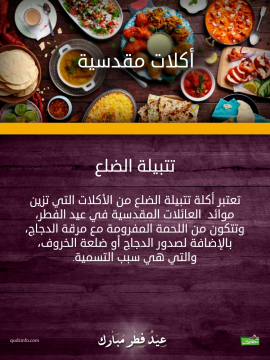 تعتبر أكلة "تتبيلة الضلع" من الأكلات التي تزين موائد العائلات المقدسية في عيد الفطر، وتتكون من اللحمة المفرومة مع مرقة الدجاج، بالإضافة لصدور الدجاج أو ضلعة الخروف، والتي هي سبب التسمية.