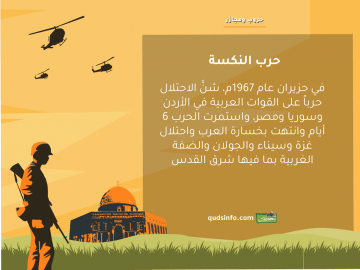 في حزيران عام 1967م، شنَّ الاحتلال حرباً على القوات العربية في الأردن وسوريا ومصر، واستمرت الحرب 6 أيام وانتهت بخسارة العرب واحتلال غزة وسيناء والجولان والضفة الغربية بما فيها شرق القدس.