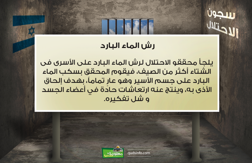 أسوأ شيء في فصل الشتاء هو الماء البارد، تخيل إنه الأسير بيتعرض لرش كامل جسمه بماء مثلج في أيام الشتاء؟!!! يلجأ محققو الاحتلال لرش الماء […]